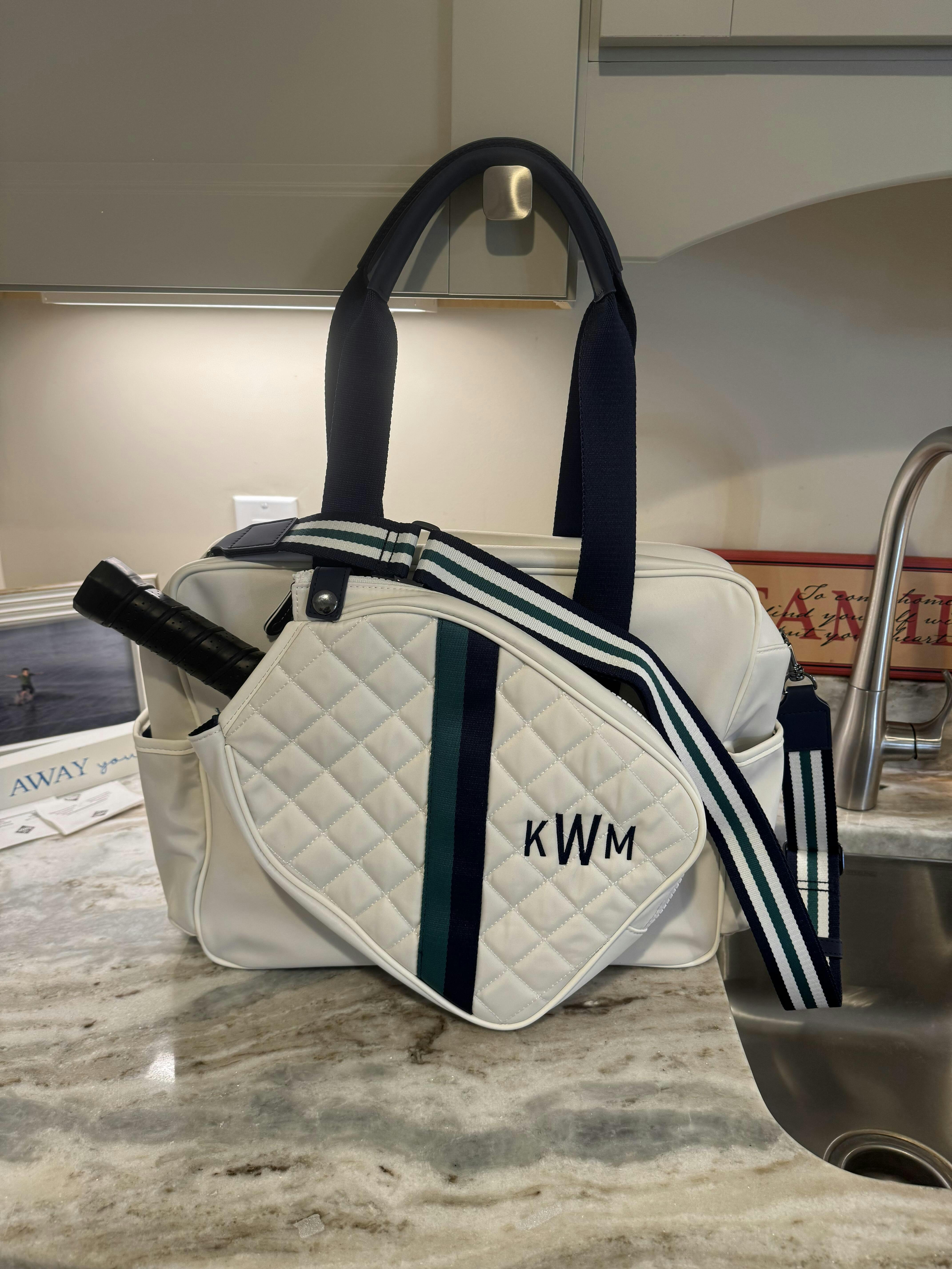 This pickleball bag is so cute and the monogram is the perfect touch! The bag has plenty of room for balls, a pair of apres sandals, towel, sweatbands, sunscreen, bug spray, water bottle, everything you need. All my friends are jealous!